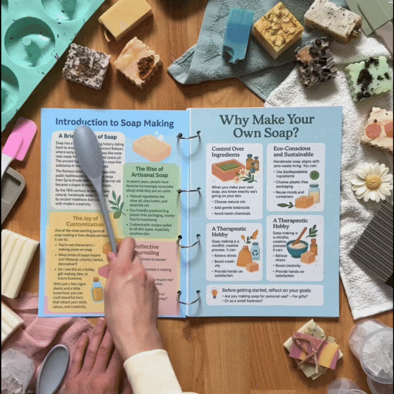This all-in-one soap-making guide includes over 1000 pages of resources β from beginner-friendly projects to advanced recipes, step-by-step visual guides, ingredient charts, and creative journaling pages. Whether youβre crafting for relaxation, natural skincare, or building a small business, this guide will help you stay on track, build confidence, and enjoy the art of handmade soap like never before.
